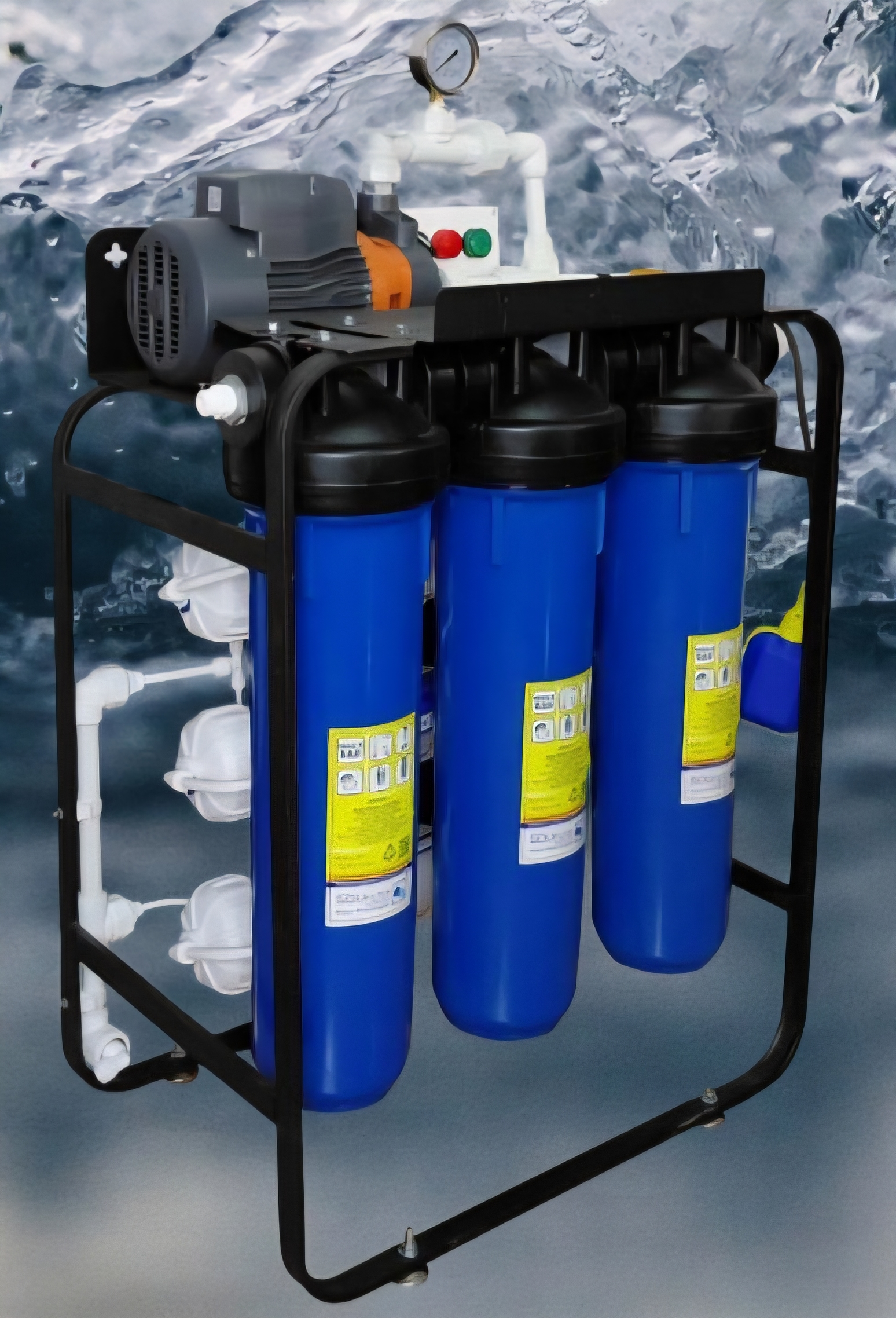 تصفیه آب دائم کار ۳۵۰۰ لیتری ۳ ممبران وارداتی فلو پمپ لئو کیفیت بالا کم حجم فلوتر برقی کربن پودری کربن بلاک PP ۱میکرون قابلیت اضافه کردن فیلتر uv نیمه صنعتی